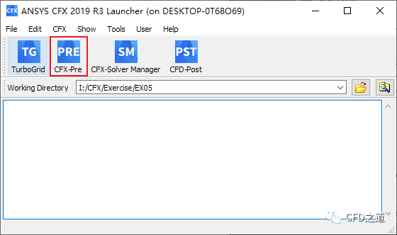 启动CFX,如下图所示设置Work Directory,点击按钮CFX-Pre启动CFX