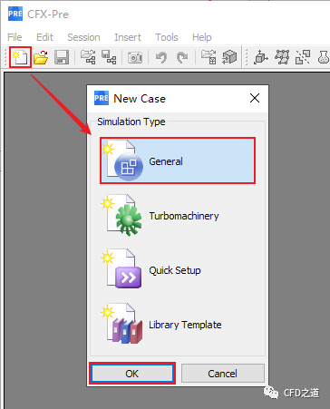 点击工具栏按钮New Case打开设置对话框,选择General项,点击按钮OK新建Case