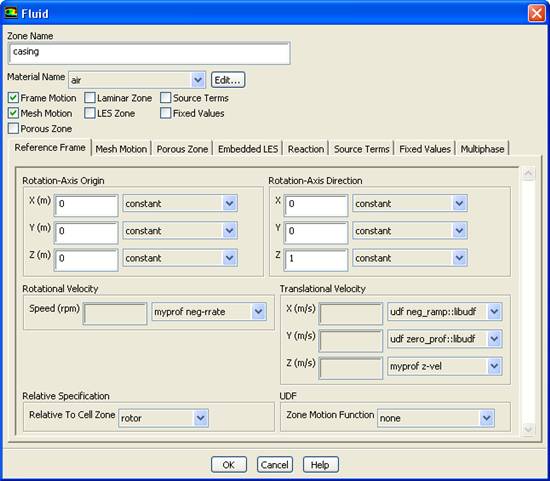 区域运动的指定,除了可以采用Profile文件外,还可以利用UDF宏DEFINE_TRANSIENT_PROFILE及DEFINE_ZONE_MOTION。这两个宏均可采用解释及编译形式加载。