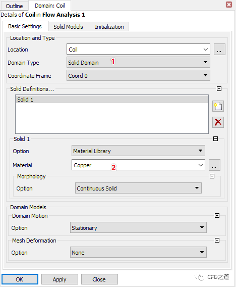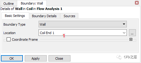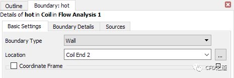 在Basic Settings标签页中指定边界位置为Coil End 1