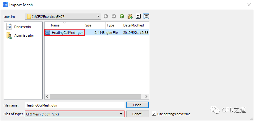如下图所示选择网格文件EX06.cas,点击OK按钮导入网格文件