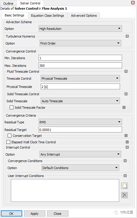 鼠标双击模型树节点Solver Control弹出参数设置面板