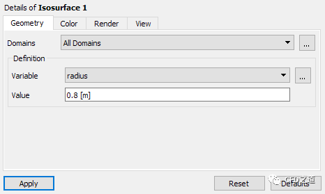 创建等值面,指定变量radius的值为0.8,如下图所示