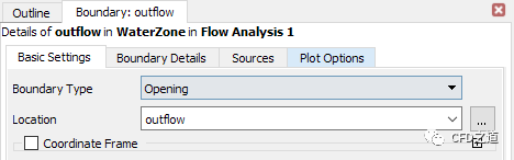 创建出口边界,指定其类型为Opening,指定其位置为outflow