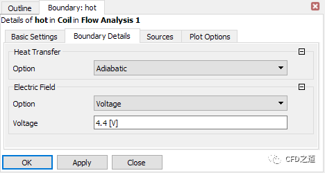 进入Boundary Details,指定Electric Field为Voltage,指定Voltage为0 V,指定电压为4.4 V,如下图所示
