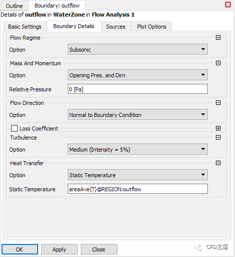 如下图所示指定static Temperature为areaAve(T)@REGION:outflow