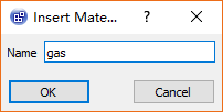 选择菜单Insert → Material,弹出对话框,修改材料名称为gas