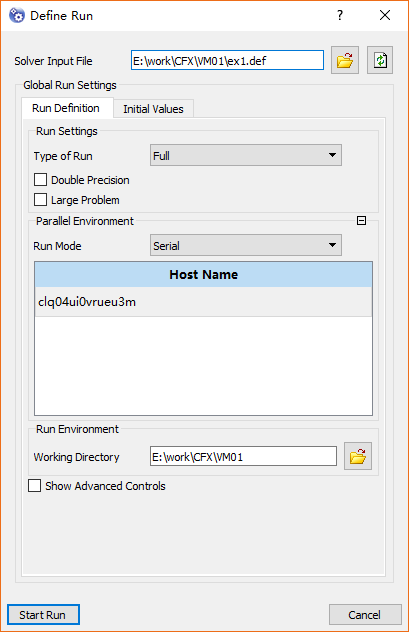 下图所示的对话框中采用默认设置,点击按钮-Start Run开始计算