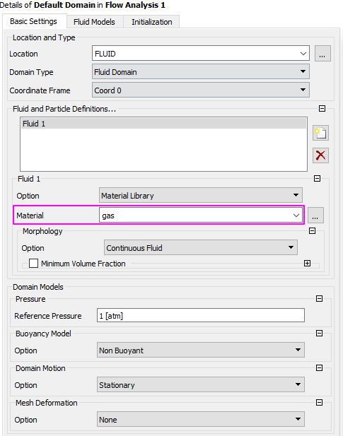 鼠标双击模型树节点Flow Analysis 1 > Default Domain打开区域设置面板