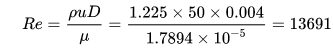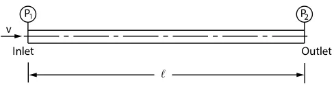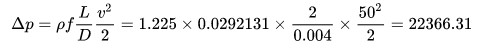 本案例计算空气流经光滑的水平管道,管道长度2m,半径0.002 m,空气密度1.225 kg/m3,粘度1.7894e-5 kg/m-s,管道入口速度50 m/s,出口压力 0 Pa。计算管道的压降。