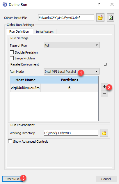 求解管理器对话框中设置Run Mode为Intel MPI Local Parallel,点击下侧的加号可增加CPU数量,如下图所示设置CPU数量为6个
