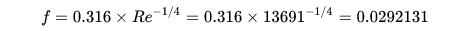 为湍流流动,采用布拉休斯公式计算摩擦系数(F. M. White. Fluid Mechanics(7nd ed). P366页)