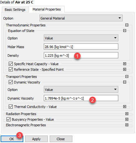 如下图所示,材料设置面板中修改Density为1.225 kg/m3