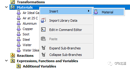 右键选择节点Materials,点击弹出菜单项Insert → Material插入新材料NonNewton