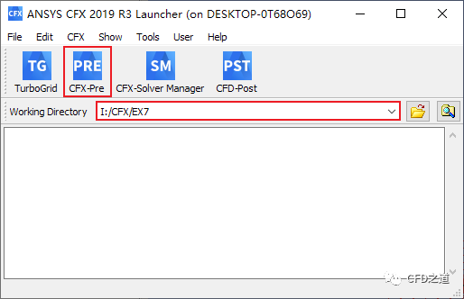 点击按钮CFX-Pre启动CFX前处理界面 -