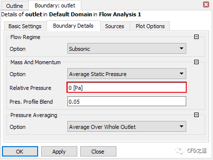 切换至Boundary Details标签页,设置Relative Pressure为0 Pa