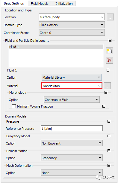 鼠标双击模型树节点Flow Analysis 1 > Default Domain打开区域设置面板