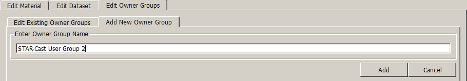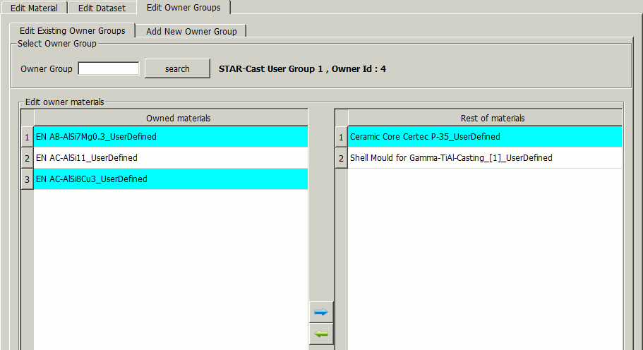 可以在 AMat.pro Builder 的编辑所有者组选项卡中针对专用和用户自定义材料数据处理所有者组。