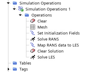 执行此模拟操作序列时,Simcenter STAR-CCM+ 首先清除任何现有求解,然后执行网格操作。生成网格后,Simcenter STAR-CCM+ 运行初步 RANS 模拟,然后将 RANS 求解映射到 LES 域并运行 LES 模拟。