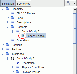 通过检查关联接触旁边的图标,可以检查交界面方向。