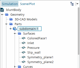 最后,重命名 ColoredFace1(着色面1) 节点和 bluntBody(钝体) 零部件: