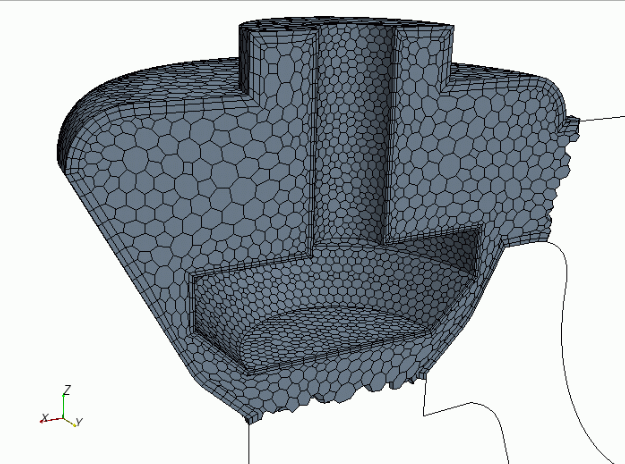 在此示例中,原始网格单元集包含一部分模型网格单元。增长操作后,网格单元集根据原始网格单元集的面增长为包含最近的相邻网格单元。