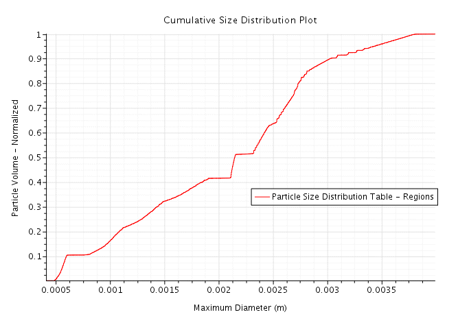 Simcenter STAR-CCM+ 可以从在离散多相流体中使用 AMUSIG 方法的模拟中提取颗粒尺寸分布数据。然后可以使用累积分布图中的抽取数据进行详细的颗粒尺寸分布分析,或选择这些绘图中的特定点以描述和量化样本中颗粒尺寸的分布。