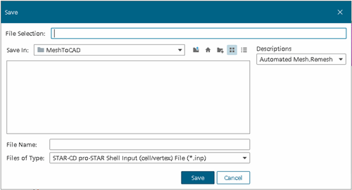 属性 值 部件 [网格部件] 面网格生成器 表面网格重构器 - 定义所需的默认控制并执行操作。
