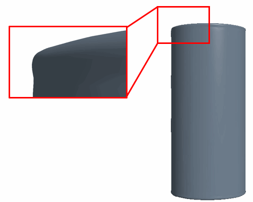 如果不进行网格重构并尝试转换未包含单独块的网格数据,则生成的体可以在连接面之间的交界面处包含不受控制的圆角,以解析任何尖角。如果使用网格重构选项,而不将曲面分割为单独的块,则生成的网格将受挤压,如下所示。发生这种情况是因为算法已光顺并混合了两个相邻面: