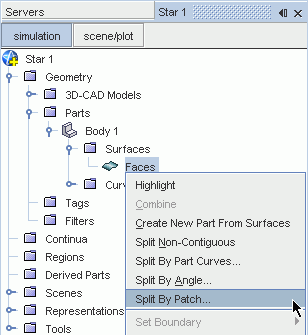 | 注 | 从属于原始表面节点的任何标签都不会复制到分割节点中。 新表面也不会分配给任何边界。 |