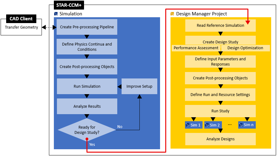 下图概述了 Simcenter STAR-CCM+ 中的设计探索过程: