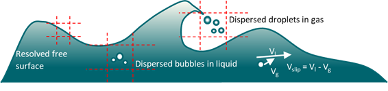 - 模型可以假设一个相在另一个相中离散为液滴或气泡,或者两者相不互溶并在它们之间形成已分解的自由表面