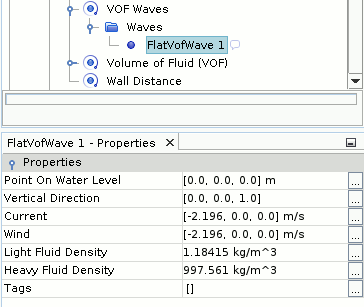 在模拟期间,自由表面水位随时间的变化而变化。 Simcenter STAR-CCM+ 提供可让您指定波初始条件和边界条件的 VOF 波模型。 此处,在静水中拖曳船。 因此,请定义静水 VOF 波。