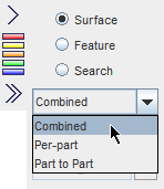 - 零部件至零部件/区域至区域 — 只显示两个或更多个零部件的相互作用产生的诊断结果。只有三个诊断与此模式相关:穿孔面、关闭接近面和重复面。在此模式下,其他所有诊断均在场景和滑出面板中处于隐藏状态。