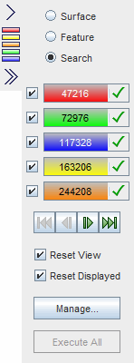 搜索工具使用谓词定义过滤器并查找离散表面上的特定特征。在 Create/Modify Search Filters(创建/修改搜索过滤器) 面板中,单击管理以管理搜索过滤器。请参见搜索工具工作流。