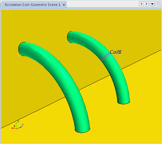 励磁线圈模型和有限元励磁线圈模型用于计算励磁线圈产生的电流密度(Eqn. (4332) 中的 )。磁矢势求解器将计算的 用作固体区域的电流密度源。
