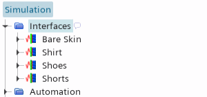 在人体模型和驾驶室区域之间创建交界面。对于此模拟,人体模型身穿衬衫、短裤和运动鞋。因此,需要四个不同的交界面: