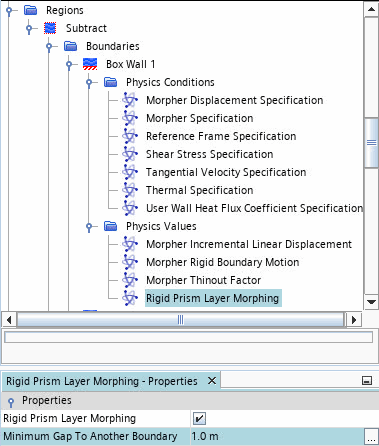 在流体模拟中,棱柱层厚度会影响壁面边界 y+ 计算的准确度。要避免变形期间不必要地使棱柱层变形,可以应用刚性棱柱层变形方法。阈值距离定义在减小此边界与另一个边界之间的间隙时何时可以对棱柱层网格单元进行变形。