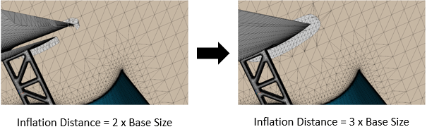 For the case below, if you use an inflation distance equal to two times the base size the wrapper struggles to separate the wing surface from the extent surface, leading to an invalid imprinting result. Using an inflation distance equal to three times the base size leads to a successful local wrapping result: