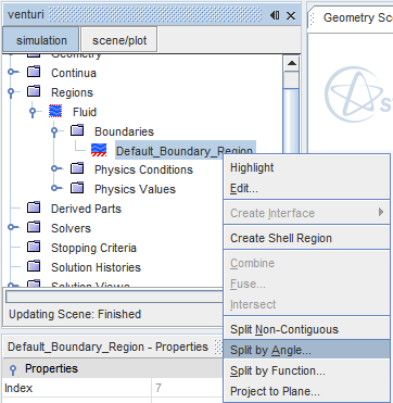 右键单击 Default_Boundary_Region(默认边界区域) 节点,然后选择根据角度分割。