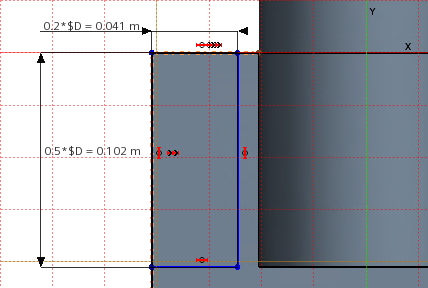 - 在尺寸对话框中,输入 0.5*$D,然后单击确定。