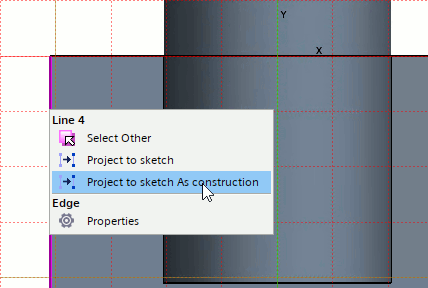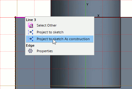 在左侧,右键单击主体的垂直外边,然后选择作为构造投影至草图。