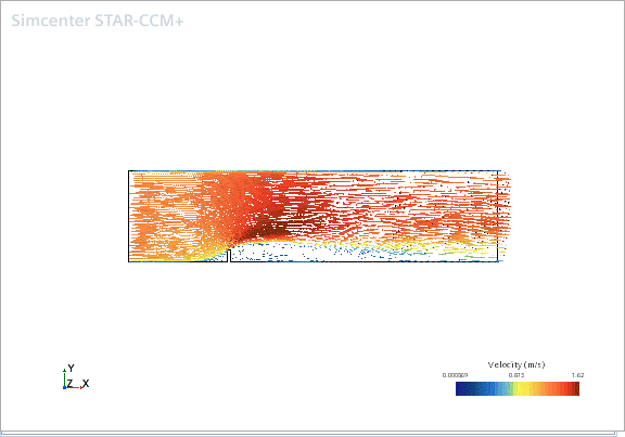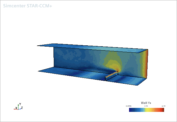 可视化结果 查看矢量和标量场景。 激活矢量场景 1 屏幕以查看速度矢量场。 单击标量场景 1 屏幕对应的选项卡以查看壁面上的 y+ 分布。 最大 y+ 值为 6.1811(在障碍物顶部)。但对于绝大多数流态,y+ 值低于 3.0,这是精确检查壁面数据时认为可接受的最大值。