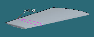 在原始实验中,流数据是按翼展方向对七个截面进行测量的。在本教程中,您将在翼展 0.8b 位置创建一个截面平面(其中 b 为翼展),并使用此截面来比较计算数据和实验数据。还可以比较压力系数数据。