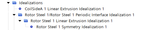 Simcenter STAR-CCM+ 会自动为已识别简化的区域生成理想化。这些理想化对象存储在节点中。某些理想化具有可修改的属性,例如应用于二维分析报告的拉伸深度。理想化也可以成链或嵌套,以组合不同的效果。例如,要根据电机的 2D 扇区生成整个域报告,需要围绕电机轴进行周期性理想化,并沿电机轴线性拉伸理想化。下面提供了有关理想化类型及其所需对象的详细信息。