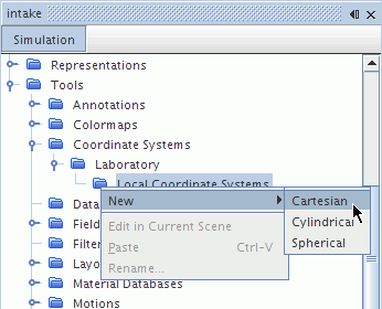 右键单击基本的基准坐标系或之前定义的笛卡尔局部坐标系的局部坐标系管理器节点,选择新建,然后选择要创建的局部坐标系类型: