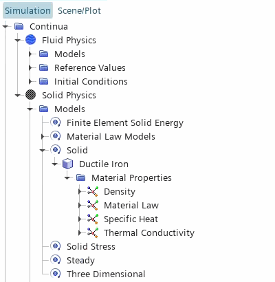 Group Box Model Space Three Dimensional Time Steady Material Solid Optional Models Finite Element Solid Energy Optional Models Solid Stress Enabled Models Material Law Models (selected automatically)