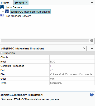 在 Simcenter STAR-CCM+ 工作区中,Simcenter STAR-CCM+ 提供一个窗口,显示在本地网络中启动的服务器进程的列表。Simcenter STAR-CCM+ 通过将广播发送到本地网络并列出响应的服务器来填充此窗口。
