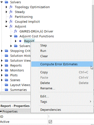 创建总和报告,然后将标量场函数设为 Error Estimate of [Cost Function]([成本函数] 的误差估计)。
