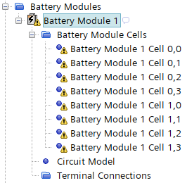 电池模块和所有关联的电芯节点上会显示一个警告符号,指示它们需要进一步设置。此时,要求给它们分配几何部件。